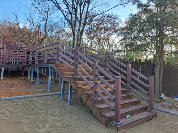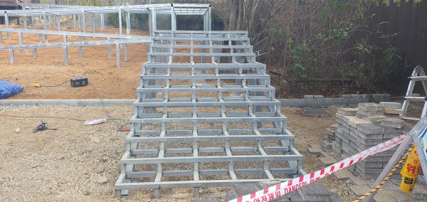 계단이나 꺽이는 길 구간의 경우 유동형 브라켓을 사용하여 미관적 자연스러움과 시공의 편의를 돕습니다.